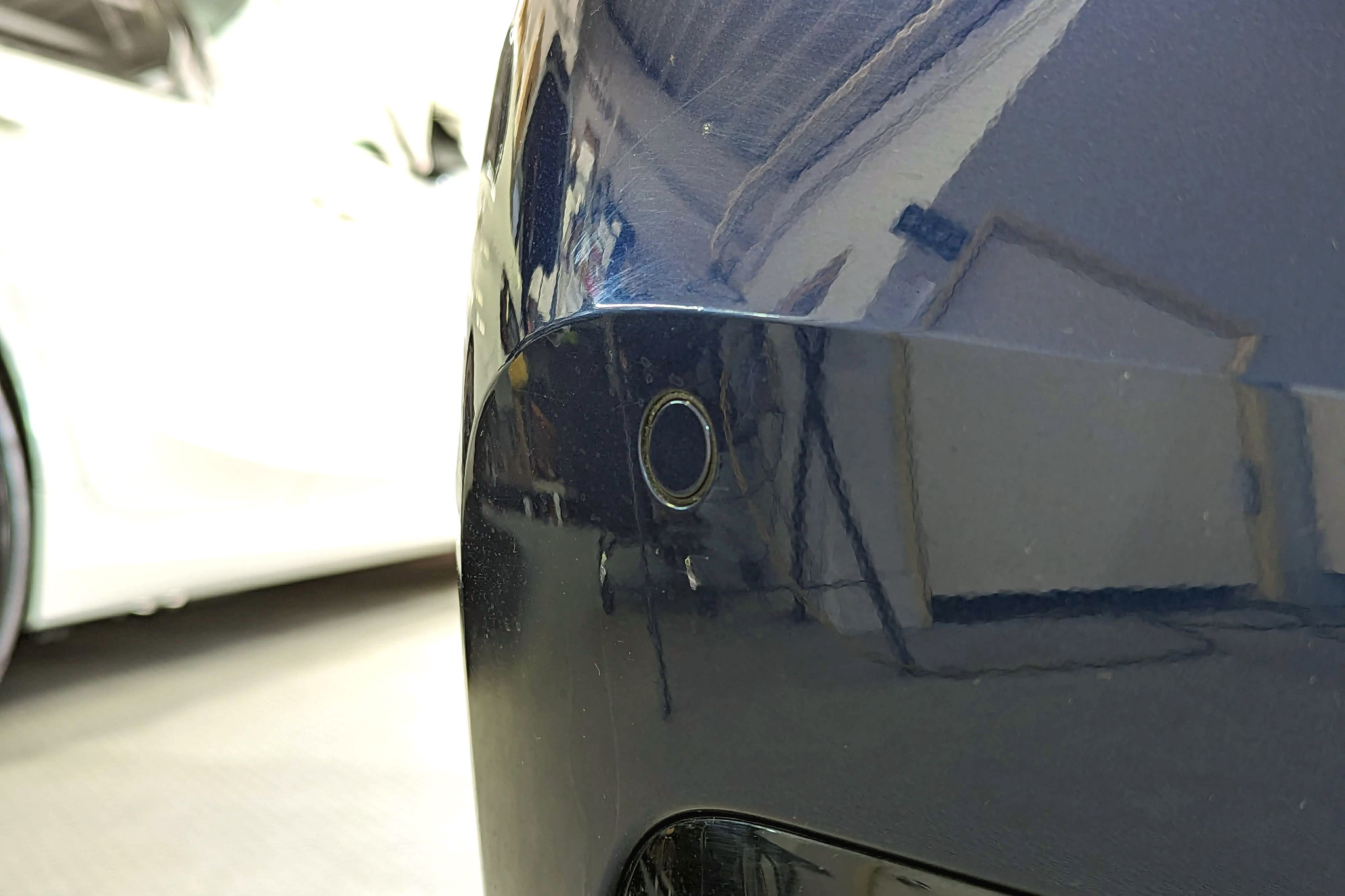 こちらのF31は リアのみPDC付きの車両です。フロントバンパーを加工して純正PDCセンサーを取付け機能するように設定しました。ディーラープログラムでも元に戻ることはありません。